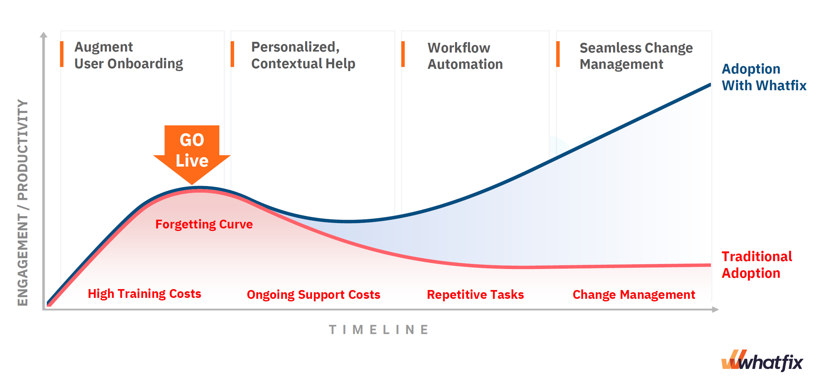 By utilizing Whatfix’s Digital Adoption platform, we empower your organization to efficiently manage the end-to-end enterprise software adoption lifecycle across any business application. We help you onboard, train, and support end users on software applications without the need for external intervention, delivering a seamless product experience and eliminating technology complexities.